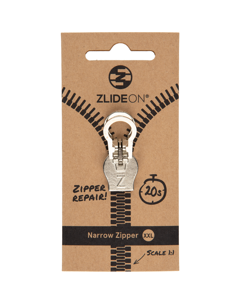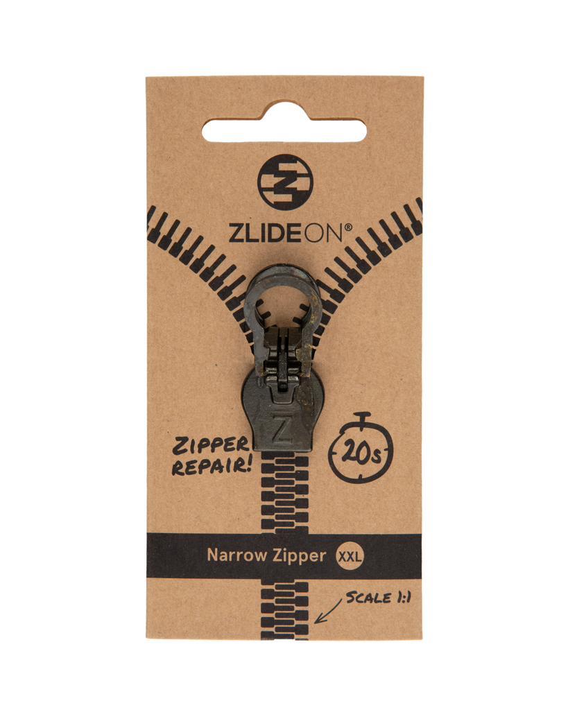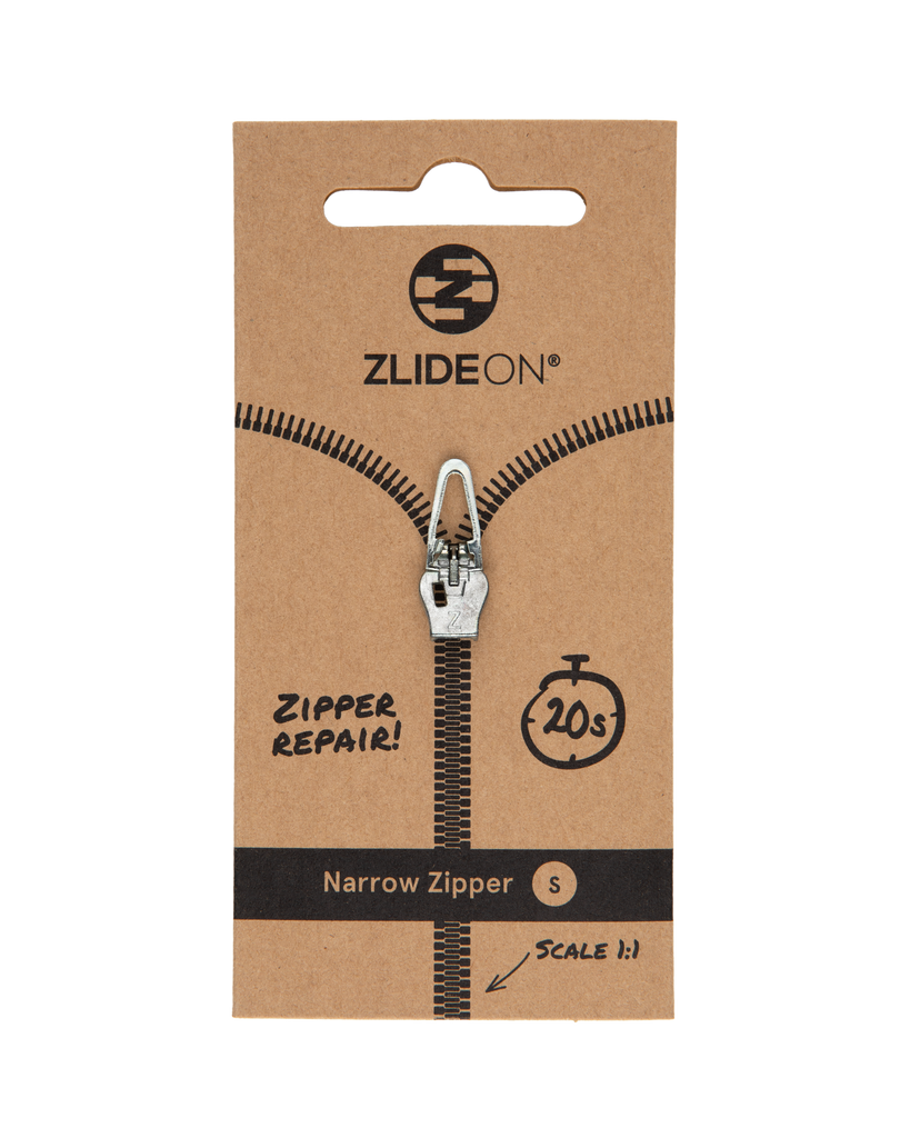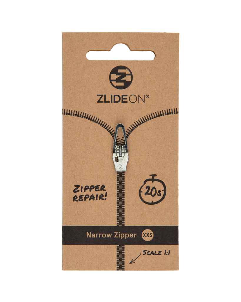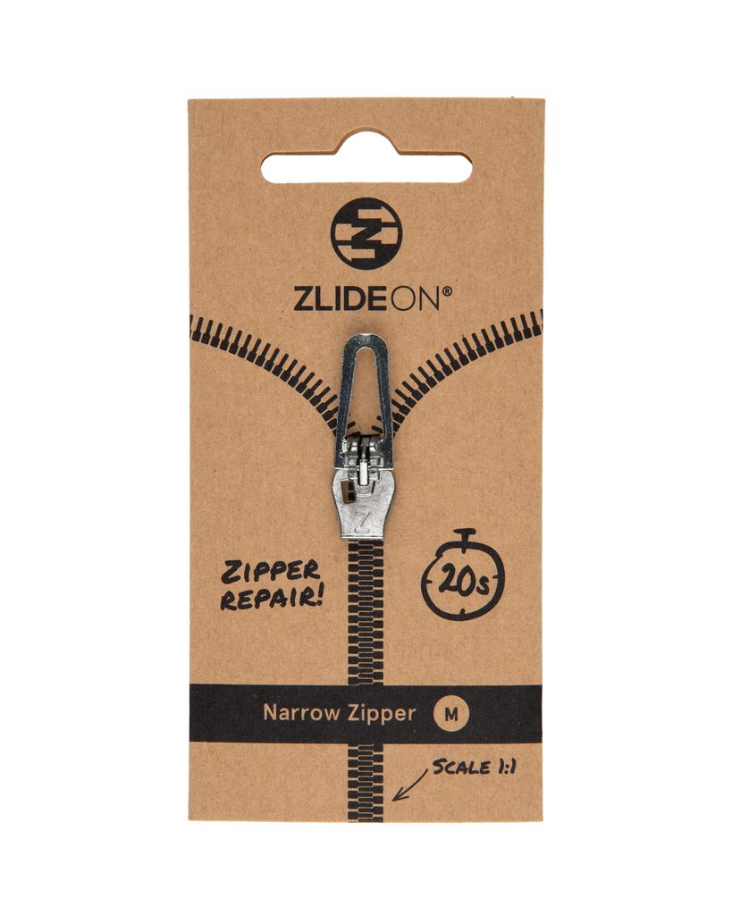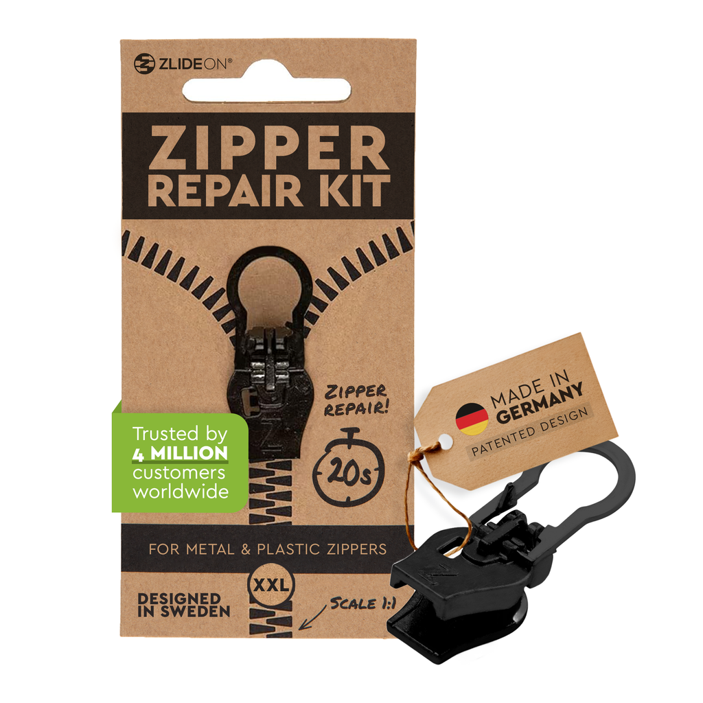 ZlideOn est une innovation suédoise brevetée qui répare les fermetures éclair cassées en remplaçant le curseur, et non la fermeture entière. Aucune couture n'est nécessaire. Il suffit de retirer l'ancien curseur, de clipser le ZlideOn, et la fermeture éclair fonctionne à nouveau en quelques secondes.